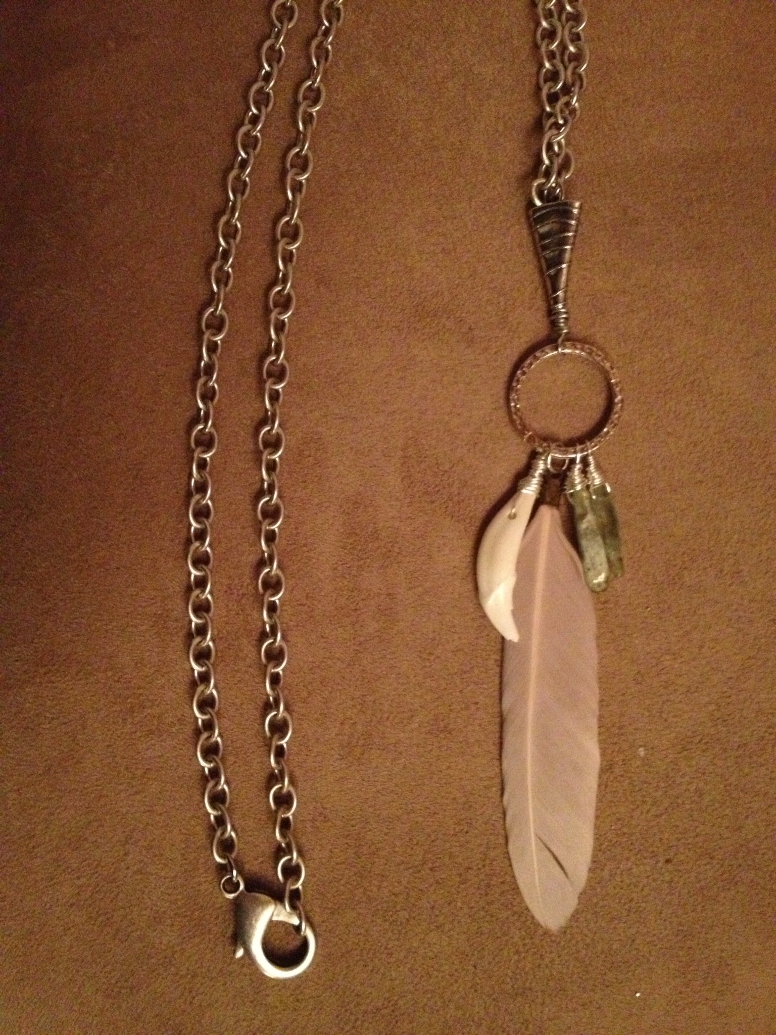 I was inspired to make this piece when a gentleman contacted me after he saw a feather on one of my pieces.  He said he was drawn to the feather because of his Native American  heritage. This is the first piece I have paid for a man. I really loved working with a different energy and style. Thank you B. Lexi for reaching out and inspiring this piece. I love it. image